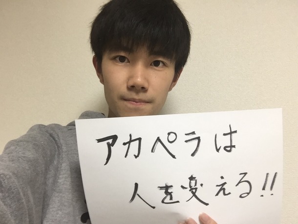 ではなぜ、今私はこの活動をしているのでしょうか。それは、一年前の大学の入学式での出来事が始まりです。入学式が始まり、よくわからない人たちからの祝詞や説明に飽き飽きしていました。式は終盤になり、大学の部活やサークルごとの紹介がありました。そこでアカペラサークルの紹介になりました。どうせしょうもないんだろうなと思っていたけど、バンドの演奏が始まった瞬間、そのすばらしさに私は鳥肌がたったことを今でも鮮明に覚えています。力強いリード、狂いのないハモり、かっこいいベースとパーカス。「これがアカペラか、すごい、自分が勘違いしていた。」と深く考え直しました。ここで私はアカペラサークルに入ると心に決めました。