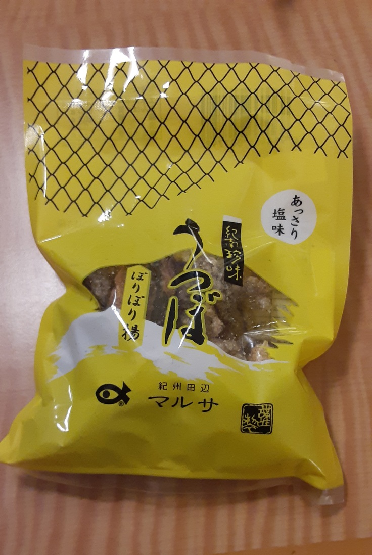 ホテルに帰ってウツボも食べました。和歌山県ではウツボも食べるみたいです。ウツボは(見た目と違って)クセが無くて美味しいと思いました。酒のツマミですね(私はお酒が飲めないのですけど)。