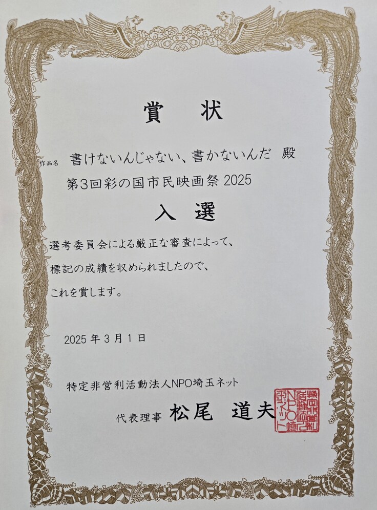 彩の国市民映画祭での上映を終えて。また、今後について少々。
