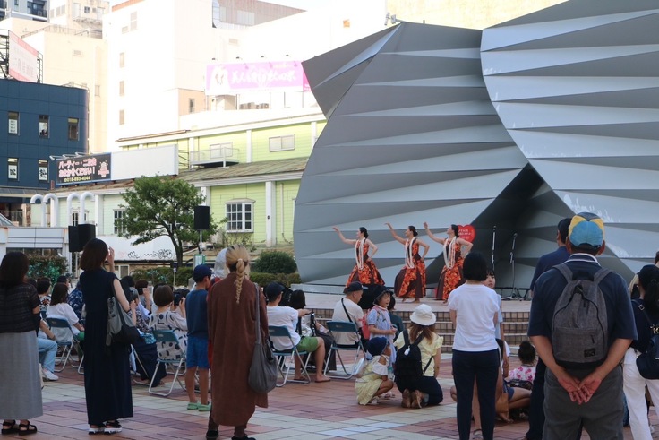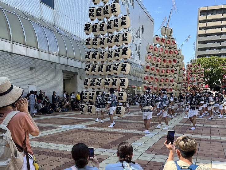 東北三大祭りのひとつ、秋田竿燈まつりのステージに出演したカロケメレメレ・フラスタジオ 秋田校の皆さんが、