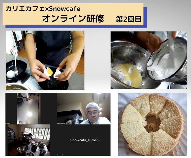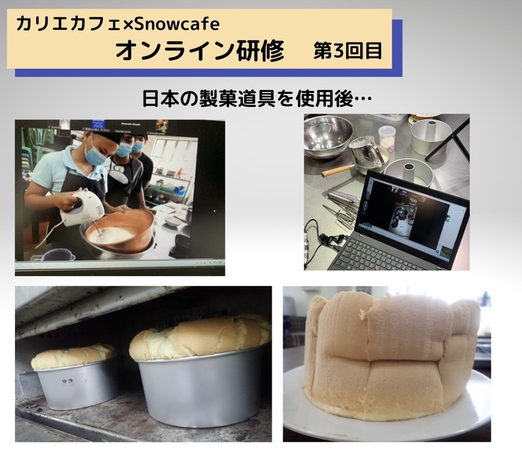 「一人ひとりのできることを」というアイキャンの理念に共感したオーナーは即快諾し、アイキャンのフィリピン事務所のサポートにより、Snowcafe × カリエカフェのオンラインでのシフォンケーキ研修がはじまりました!