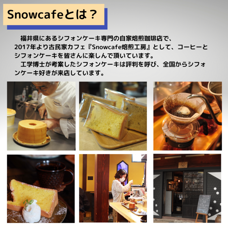そのノウハウを教わるために全国からプロも殺到する福井県のシフォンケーキ専門店Snowcafeとの出会いです。