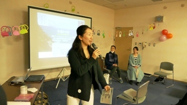 左でマイクを持っているのはゲスト兼進行役の手塚さや香さん。新聞記者の職を辞し、復興支援員制度により釜石に移住しました。今は釜援隊(復興支援員)として釜石地方森林組合で働きながら、任意団体「岩手移住計画」で、UIターンした人たち、したい人たちをつなげたり支えたりする活動をおこなっています。
