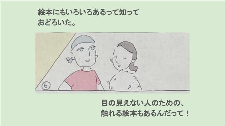 『目の見えない人に絵本を』という、大人でも難しそうな……、いえ、子どもだからこその遠慮のない発想、行動実践がある!手触りに着目、テープやクレヨン……だけじゃない。外、表に飛び出しみつけてきた!カスタネットに早変わり、ペットボトルのキャップを見開きに貼って♪開いて閉じて…カチカチカッチン 拍手を表現!??『見えない≒視力以外でも』というキーワードが、今回のプロジェクトの一つのスパイスになったらすごく嬉しい♪全盲ハッピーマンは、応援者というよりワクワク仲間なのだ。全盲旅カメラマンおーちゃん