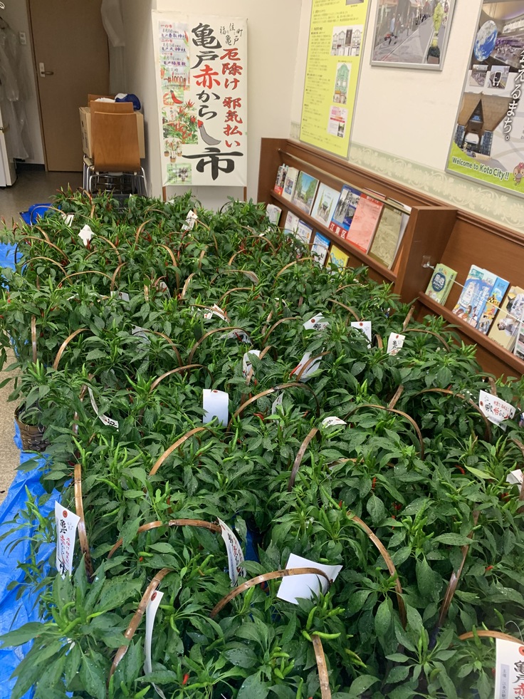 明日(8月9日(月曜))の9時から16時まで「江東区観光協会亀戸支部(江東区亀戸3丁目61ー1)」にて赤からしの販売が行われます。一鉢1,000円(税込)でなくなり次第終了となります。
