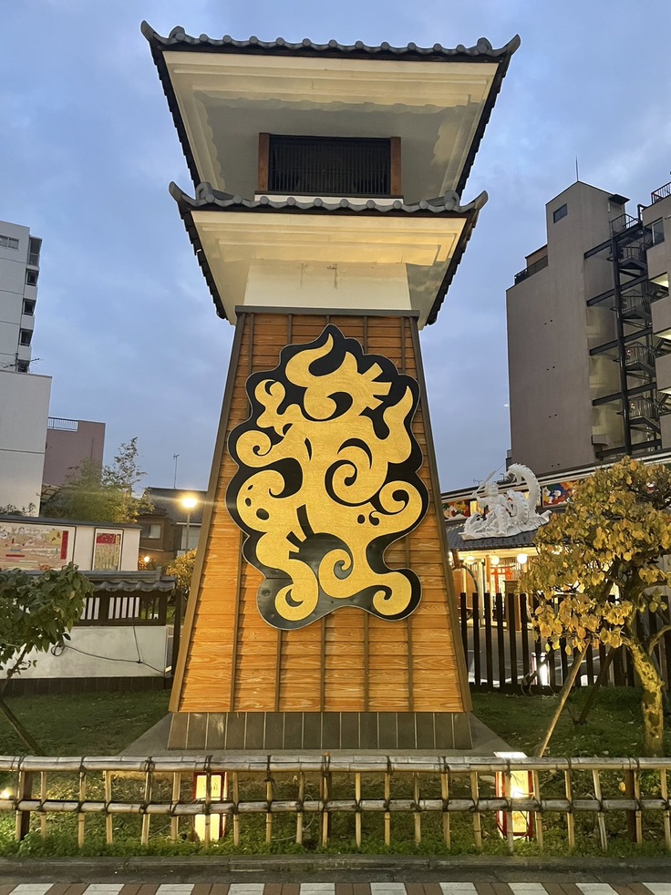 本日「亀戸梅屋敷」の「火の見櫓」への新シンボル「日本神話オブジェ」が設置されました。