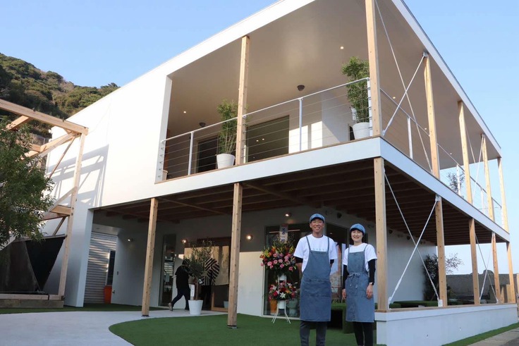 現在は、五島の特産品である安納芋を使ったスイーツや、地元の食材をふんだんに活かした料理、そして名物の五島うどんをご堪能いただける、海を一望できるレストランも運営しております。