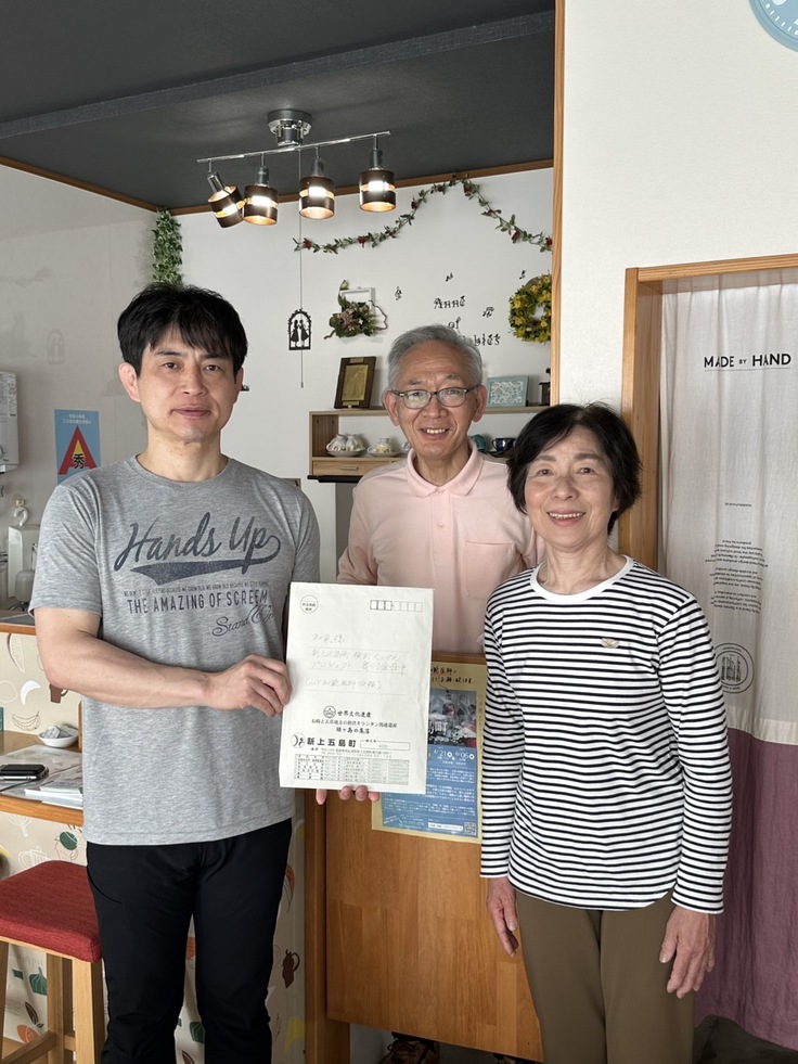 なんと、アンの富永重利さん・惠子さんが、新上五島町の22名の有志の皆様からいただいたご支援金を預かってくださっており、頂戴しました。