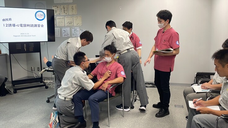 後輩たちは、救急隊に向けた心電図判読の研修を全国展開し、心電図に現れる変化を見逃さない救急救命士を養成し、1人でも多くの市民の命を守ろうと強い思いで活動しています。