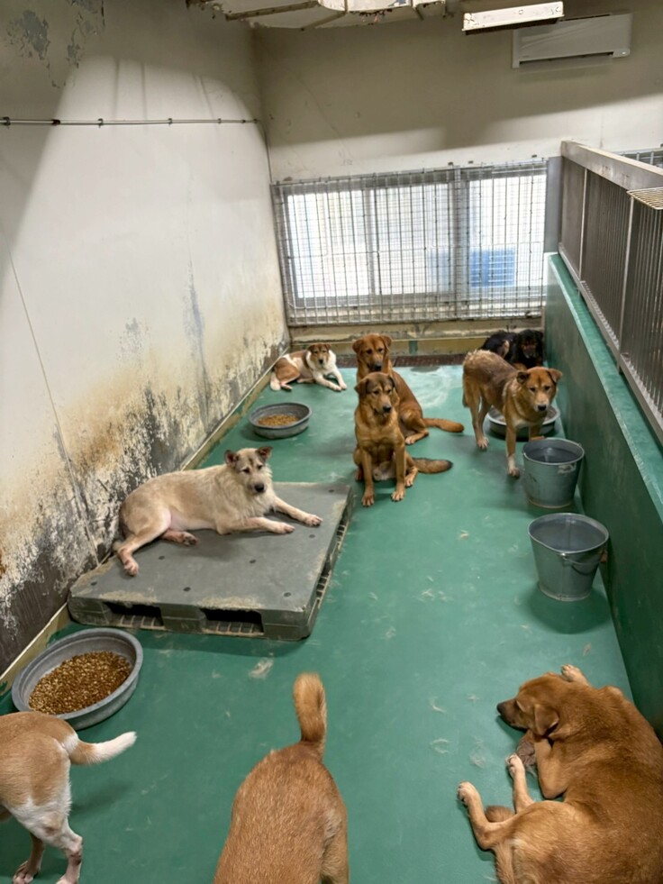 部屋に足を踏み入れた瞬間、鳴き声が響き渡り、言葉を交わすのも難しいほどに大きな犬たちが吠える一方で、奥の方では体を寄せ合い、静かに座る犬たちの姿が印象的でした。