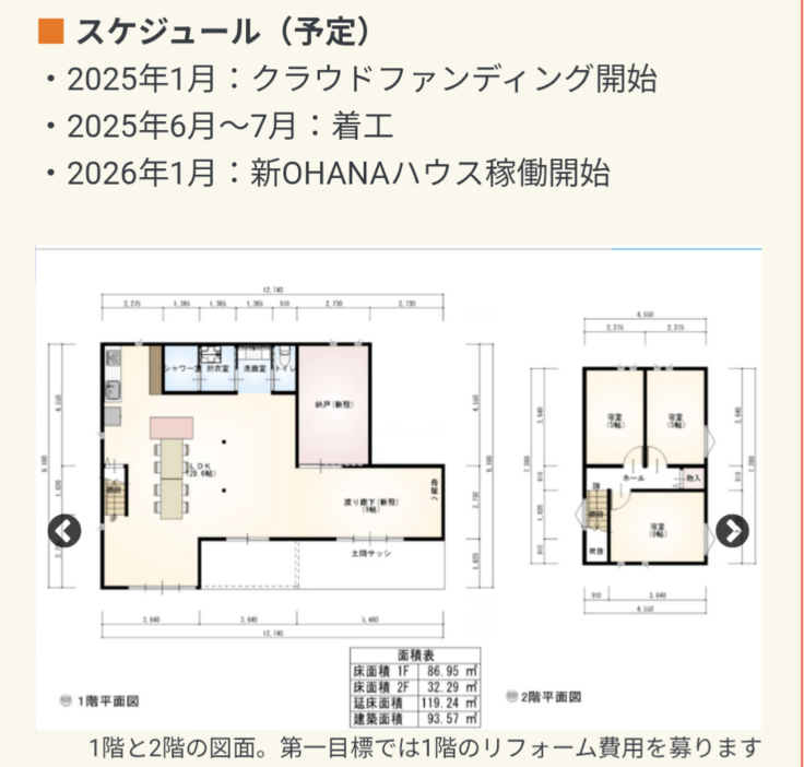 第一目標の1,500万円の達成により、納谷を改装し、母屋と連結することができます。