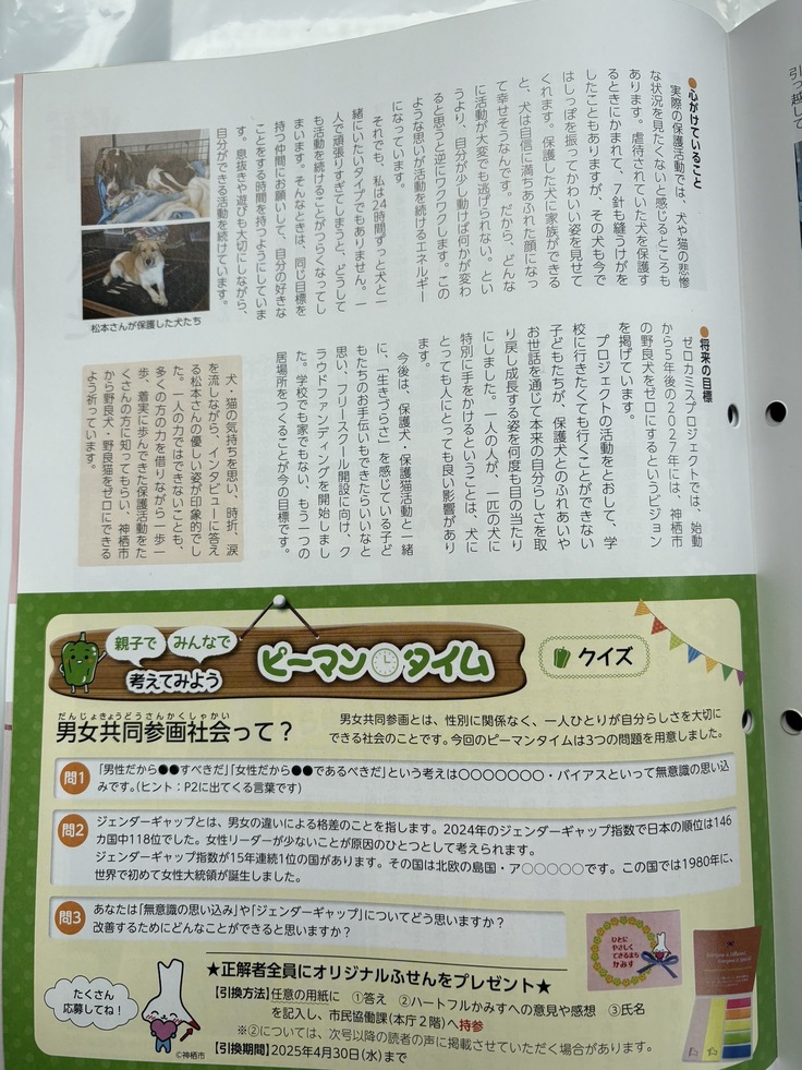 代表松本の熱い想いとOHANAの活動内容が1ページ半びっしりと載っています!