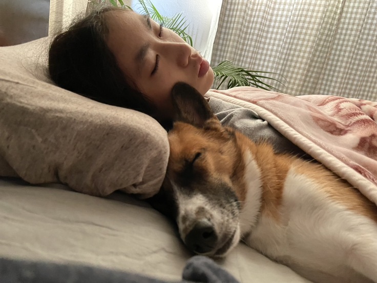 たんじろうと娘はすぐに仲良くなりました。学校から帰ると、一緒にリビングのソファで昼寝をし、母子と出かけました。学校で嫌なことがあった日は、たんじろうをぎゅっと抱きしめて気持ちを落ち着かせることもありました。勉強する娘のそばで静かに寄り添い、夜は一緒に眠ることもありました。まるで、自分の役目は娘を見守ることだと理解しているかのようでした。