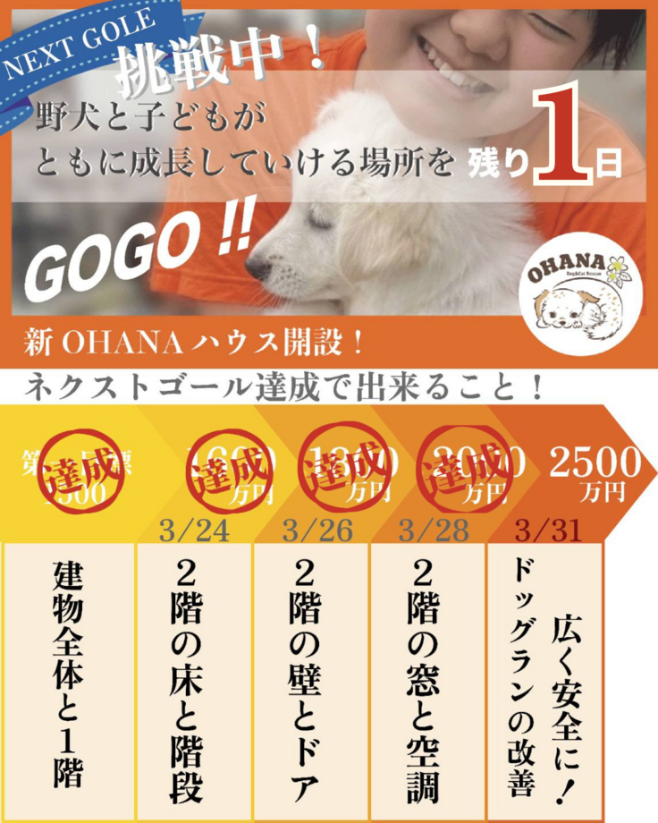 駐車場兼ドッグランを改修するため第三目標の2500万円達成するため最後まで走り切ります!