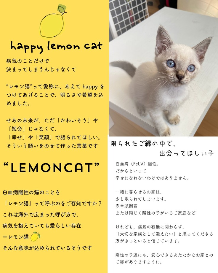 ところで、白血病陽性の猫のことを「レモン猫」って呼ぶのをご存知ですか?