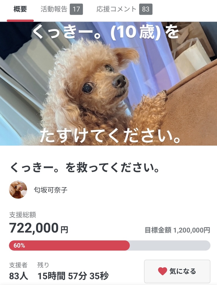 ※大切なご支援はすべてくっきー。の手術費用にあてさせていただきます。