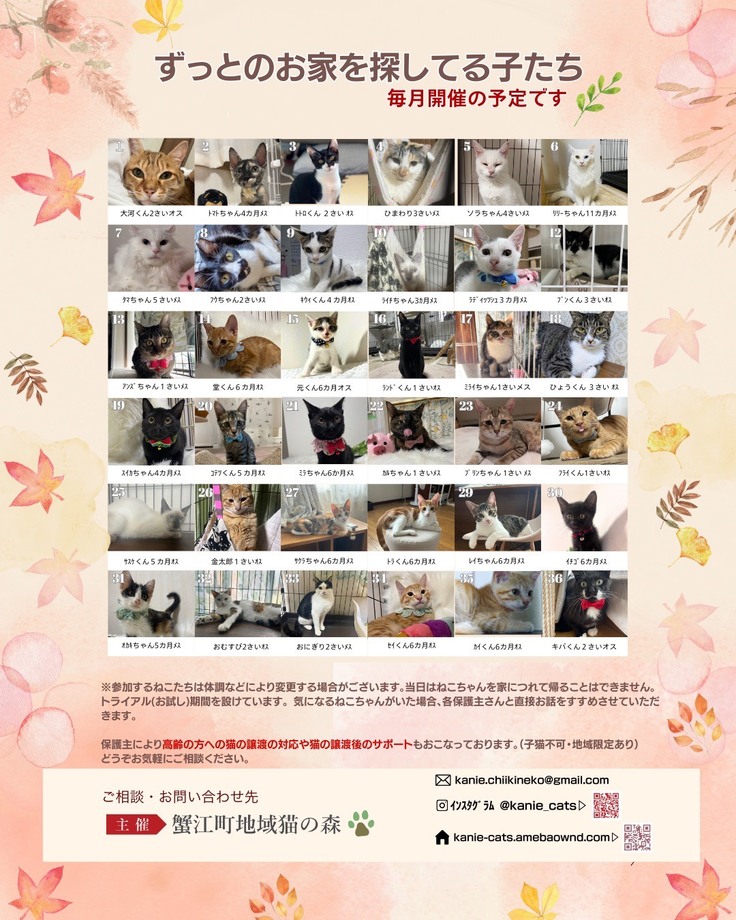 気になる子がいましたら、DMまたはメールでお気軽にお問い合わせください🐾