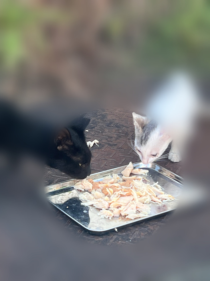 大きなオス猫たちが餌を食べてしまい、小さな子猫やメスたちはほとんど食べられず、骨が浮き出るほどガリガリの状態でした。
