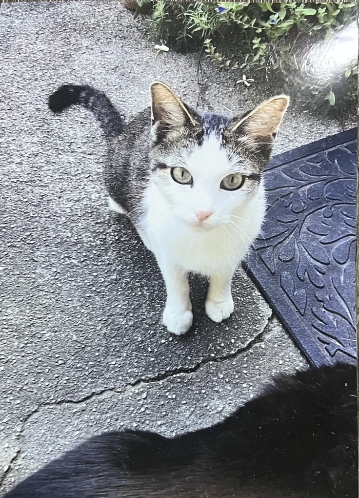 キジ白ちゃんはほとんど敷地から出ず、いつも決まった場所でのんびり過ごしています。