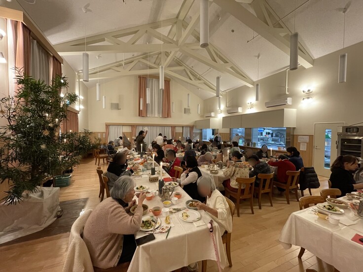 12月10日に建物が引き渡しとなり、息をつく間もないまま12月中旬に慌ただしく引っ越しを行いました。国からの補助金を受ける条件として、旧寮舎や一部の作業棟の解体撤去までを、2024(令和6)年度内に終わらせなければならなかったためです。何十年も暮らしの場であった建物からの引っ越し作業は、それだけでかなりの難事業でしたが、これも多くのボランティアの方々がご協力くださったおかげで何とかやり遂げることができ、クリスマスは新居住棟で迎えることができました。