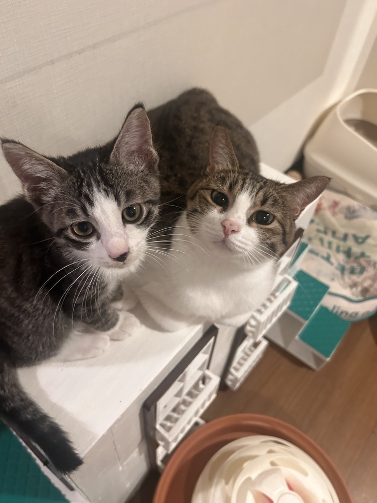 カノアとカイを保護して家に連れて帰ってから先住猫のキイが本当のお母さんみたいに毎日お世話をして育てました。