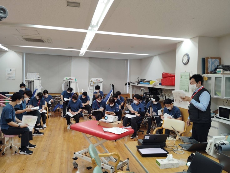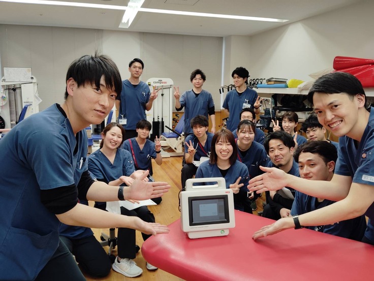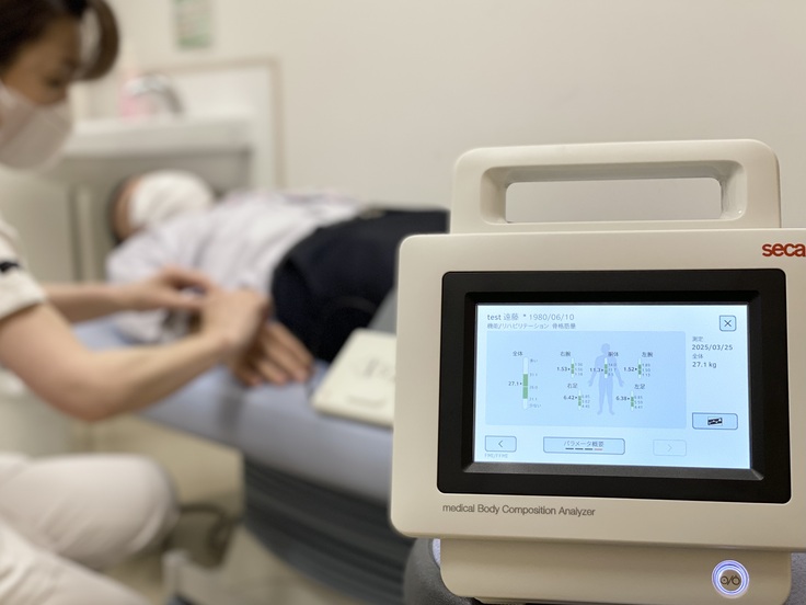 納品された体組成計の動作方法をリハビリスタッフで確認し、
