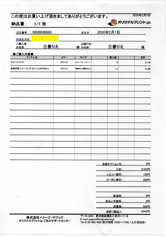 ※ミニタオルハンカチは予備として3枚多く制作したため、合計金額から差し引きます。