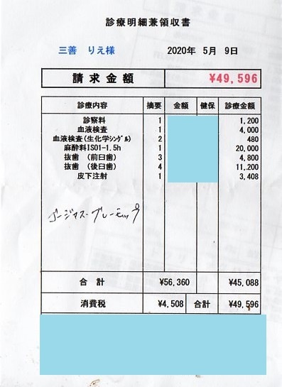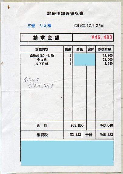 ・ゴージャス・ゴールデンモップの抜歯手術費
