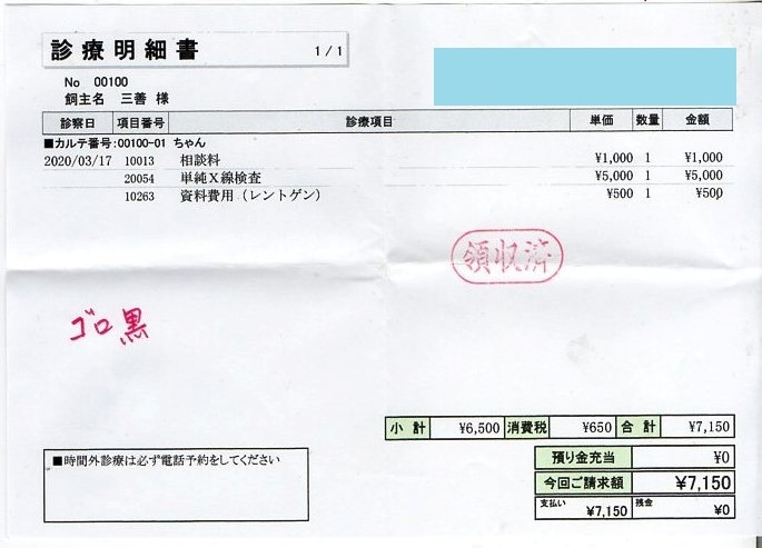 ・ゴロ黒の死因特定のためのレントゲン。2020/03/17