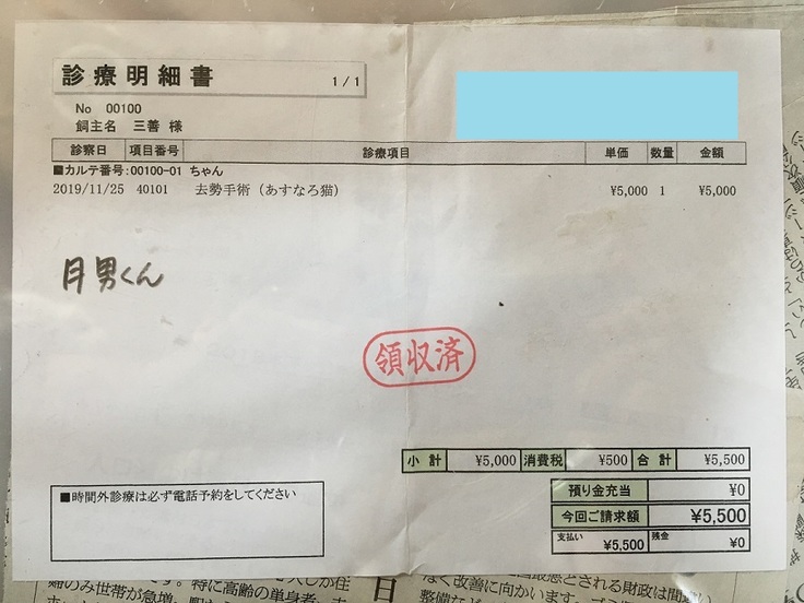 ・月男くんの去勢手術(助成金あり)2019/11/25