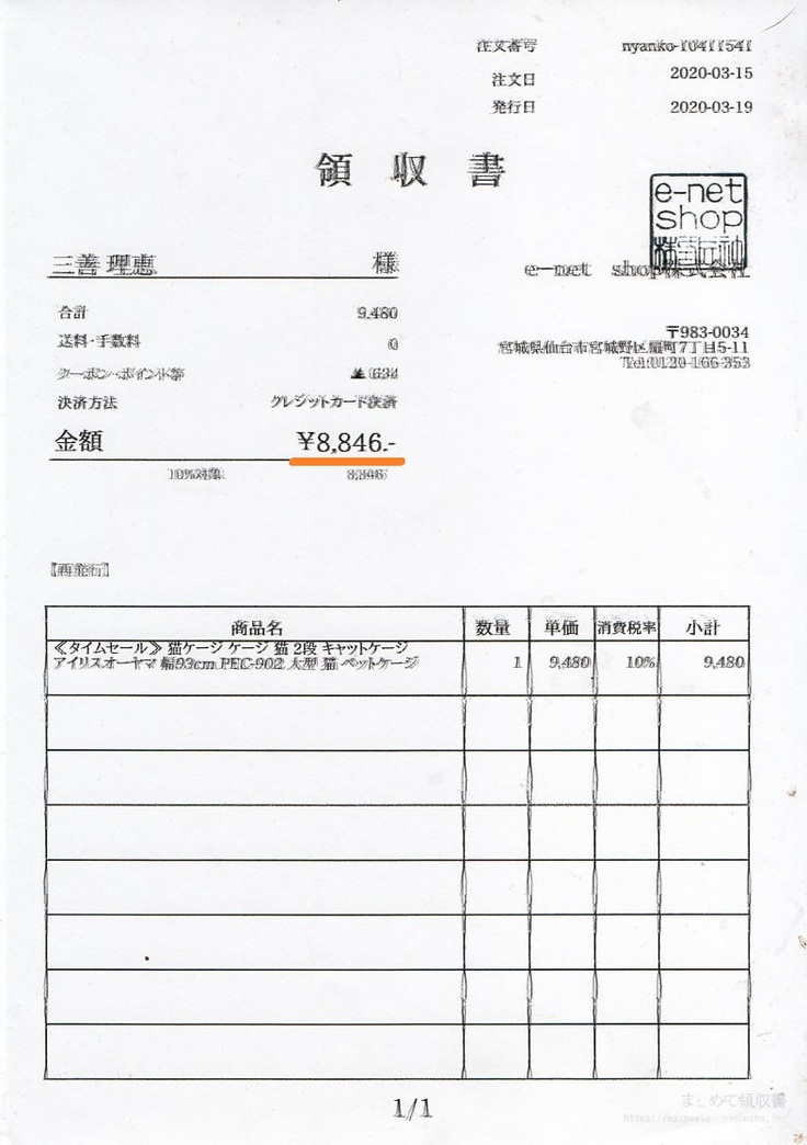 ・犬用ケージに飼育される猫のための猫用ケージ購入。2020/03/19