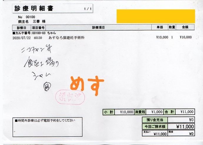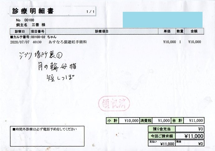 ・場所裏①の月の輪黒母猫の不妊手術。2020/07/07