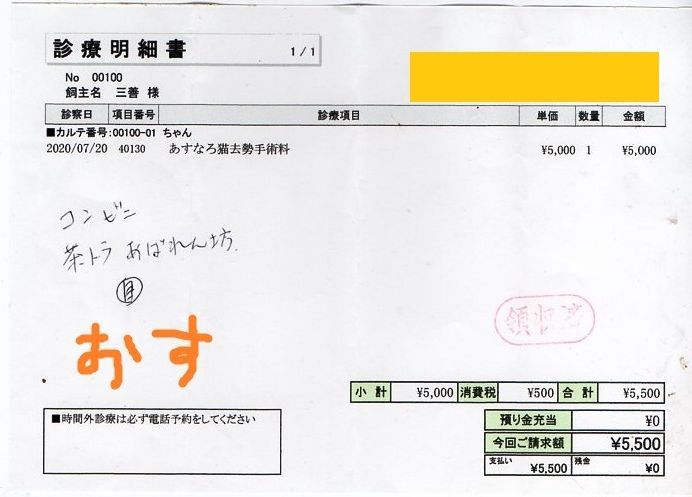 ・2年間放置していたコンビニの茶トラの去勢手術。2020/07/20
