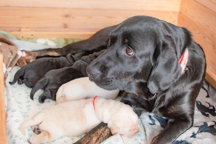 盲導犬を育成するためには、その適性をもつ犬同士の繁殖が必要不可欠です。一方で、訓練の初期段階でほとんどの犬が去勢・避妊手術を受けるため、盲導犬訓練犬とは別に繁殖専任の犬たちが必要となります。