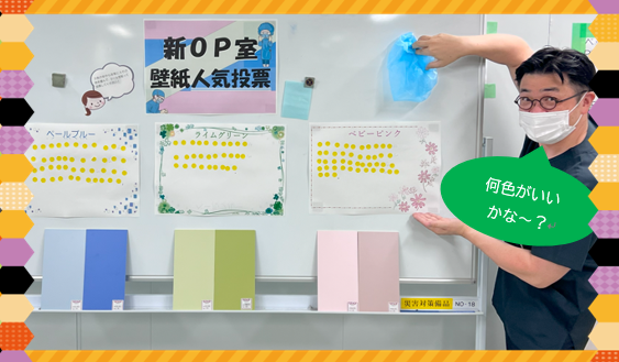 3色の中から手術室スタッフによる投票が行われ、とても拮抗した争いとなりました…。