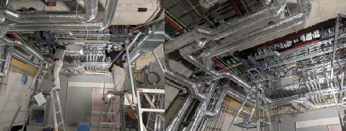 現在は、シーリングペンダント(医療ガス、電源コンセント、電気機器などを供給するための天井懸垂式アームシステム)や無影灯(影をできるだけ薄くするための照明器具)を設置するための工事中です。