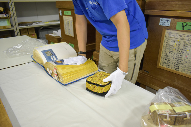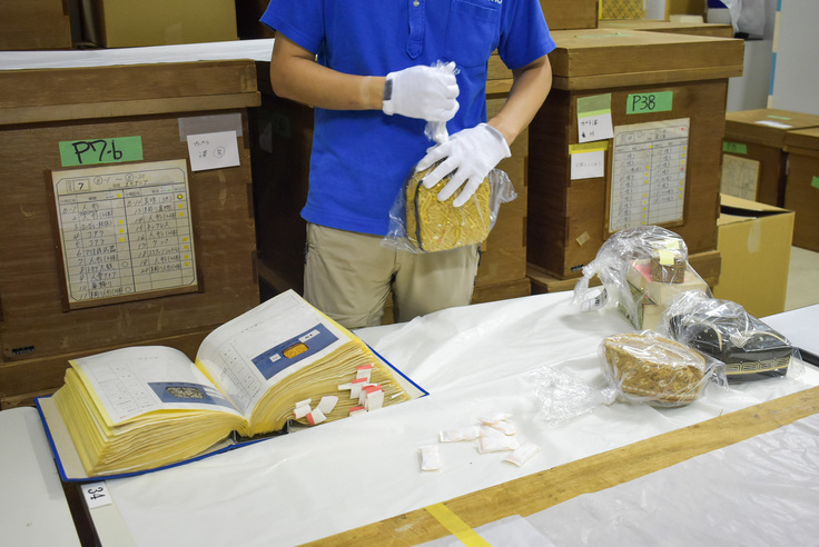 ② 淡路島の資料館時代の展示アルバムと照合し、資料番号を資料本体にタグ付け