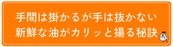 カリッとした食感は、おいしい唐揚げには欠かせないものそのためには新鮮な油で揚げる必要があります師匠の教えは、少しでも油が古くなったら交換すること。