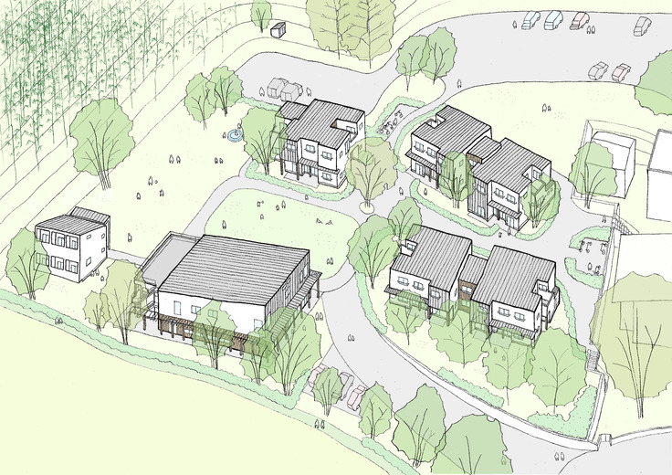 自立支援棟はワンルームの集合体で、以前から設けていましたが、青年の自立支援を充実させるために、6部屋に増設します。事務ホール棟には職員が集う事務所の他に、会議室や面接室、心理療法室、地域交流ホールを設けます。 地域の方などに気軽に立ち寄っていただけるような場所になれたらと考えています。