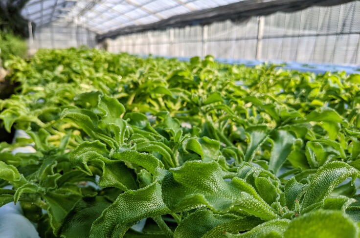 隣には、アイスプラント天山草や、ミニトマト天山姫を育てているビニールハウスがあり、今の時期はパンジーの生産もしています。