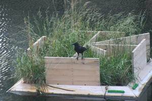 世界初のカルガモの巣作りのための水上植栽筏(イカダ)の誕生です。
