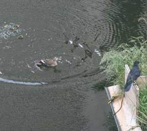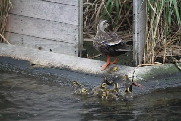 都会の運河で、カルガモが巣つくりをする為の浮巣の管理している私たちは、観察を通じて本に書かれていない多くの発見をしました。筏を設置した当時、ウィキペディアを始め専門書では、カルガモは母ガモが巣を作り、卵を温め、ヒナを育てるが、オスは子育てに参加しないと書かれていました。