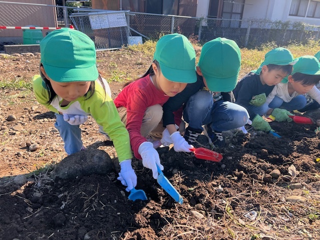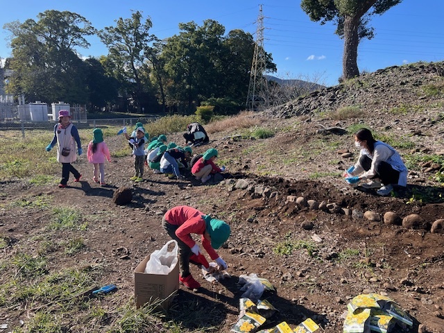 誕生院保育園の子どもたちも石拾いをしたり、草取りをしたり、花植えをしたりして