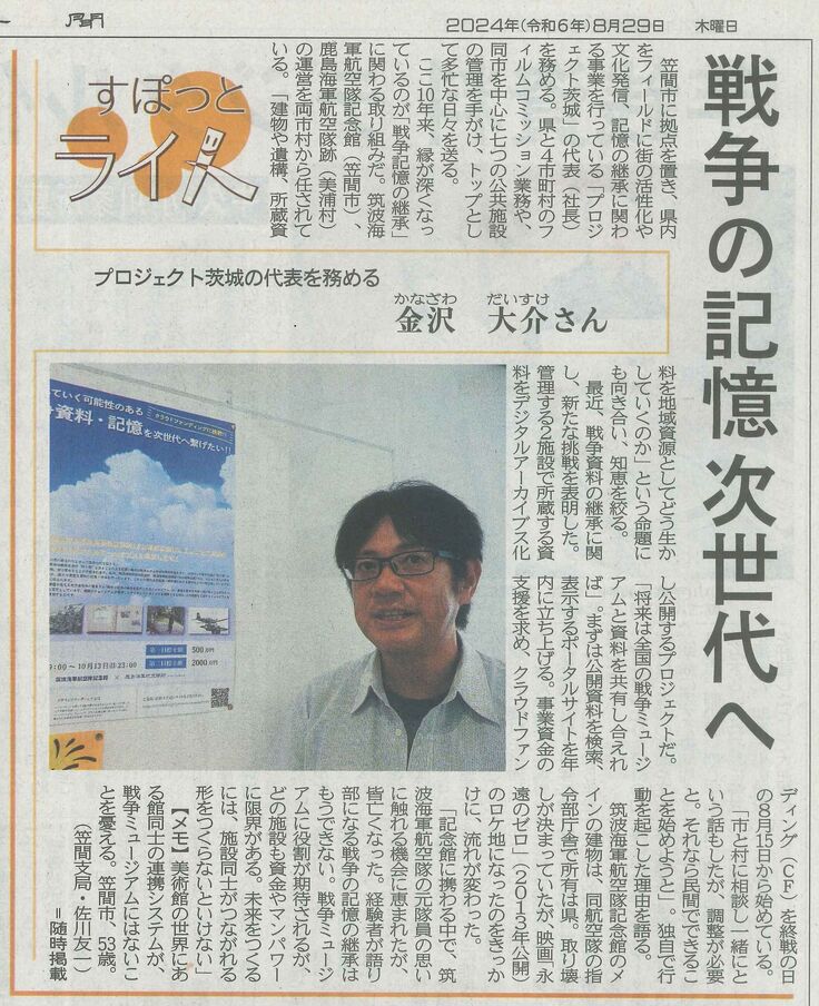 8/29日付の茨城新聞さんにご紹介頂きました!