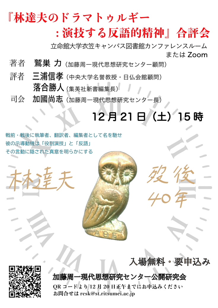 【公開研究会】『林達夫のドラマトゥルギー:演技する反語的精神』合評会開催のお知らせ