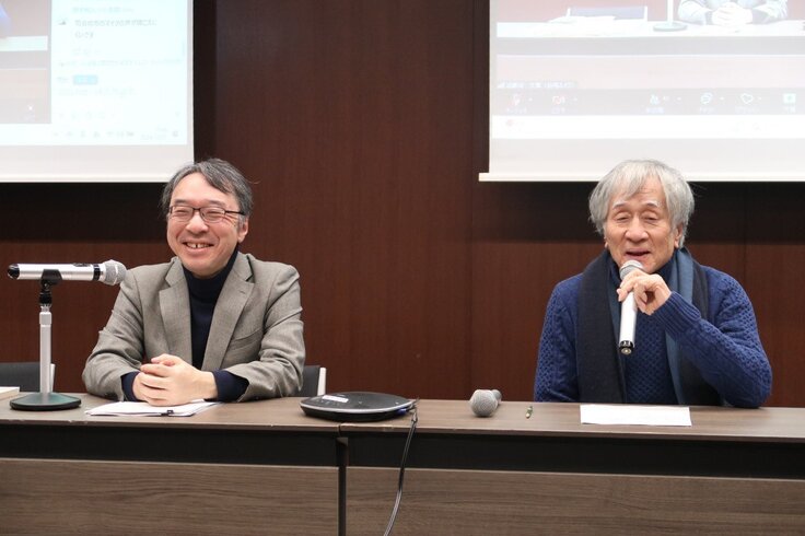 評者は落合勝人氏(集英社新書編集長) 、三浦信孝氏(日仏会館顧問) 、応答は鷲巣力顧問、パネルディスカッションの司会は加國尚志センター長。対面・オンラインあわせて 65 名が参加。参加者からは「戦後民主主義は加藤先生、林先生といった在野の存在が実質を支えていたんだ、と改めて思いました」や、