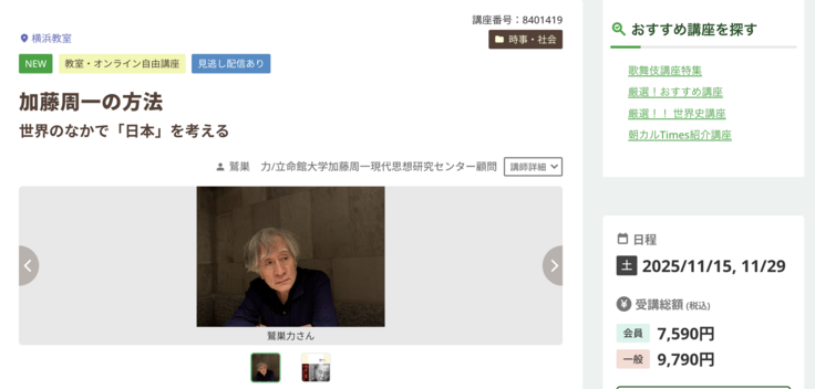対面は朝日カルチャーセンター横浜教室、オンライン配信もございます。