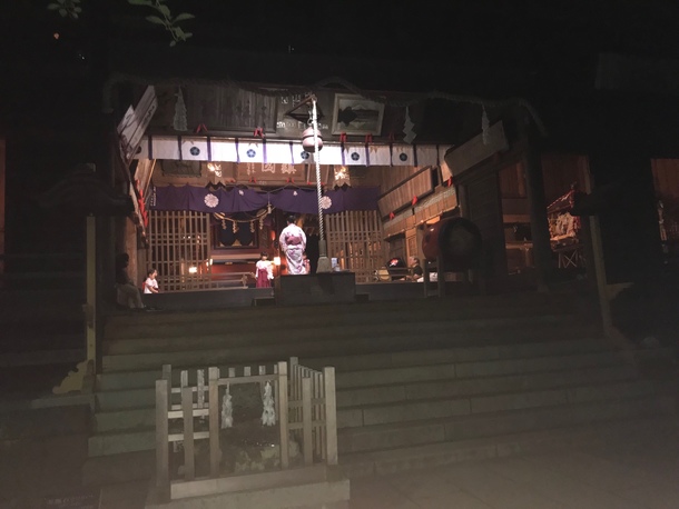 日が暮れ始めた頃、かすかに太鼓を打ち鳴らす音が、響いてきました。近所の穂見さんが、舞の練習が始まった!と教えてくれました。7月28日の浅間神社で奉納される稚児の舞の練習が今日から始まったのです。音色が、祭りが近いことを町の中に知らせかのように鳴り響いていました。稚児の方々お疲れさま。学校で居眠りしてもいいよ!