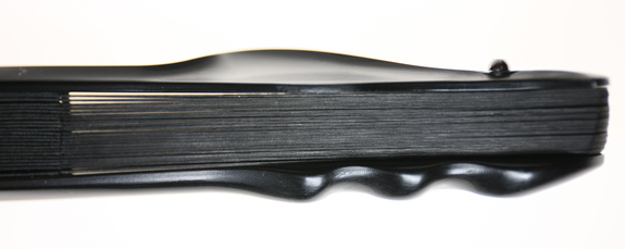 (蝙蝠に見立てた漆黒の扇。純日本製です)