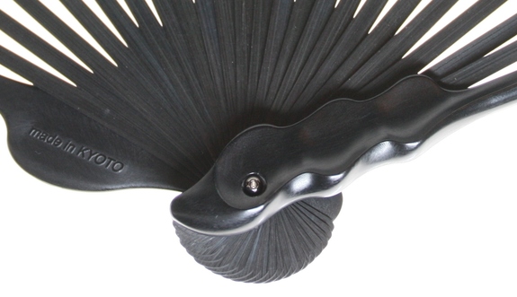 因みに扇子は両手で使えるユニバーサルデザインだと思っていらっしゃる方が多いと思いますが、実は世の中に流通している扇子の殆どが右手用で、右側に開くように仕立てられています。左手用に仕立てられた扇子は、左側に開きます。詳しくは京都の扇子屋さんで聞いてみてください。注文すれば左手用を仕立てて下さるお店もあります。